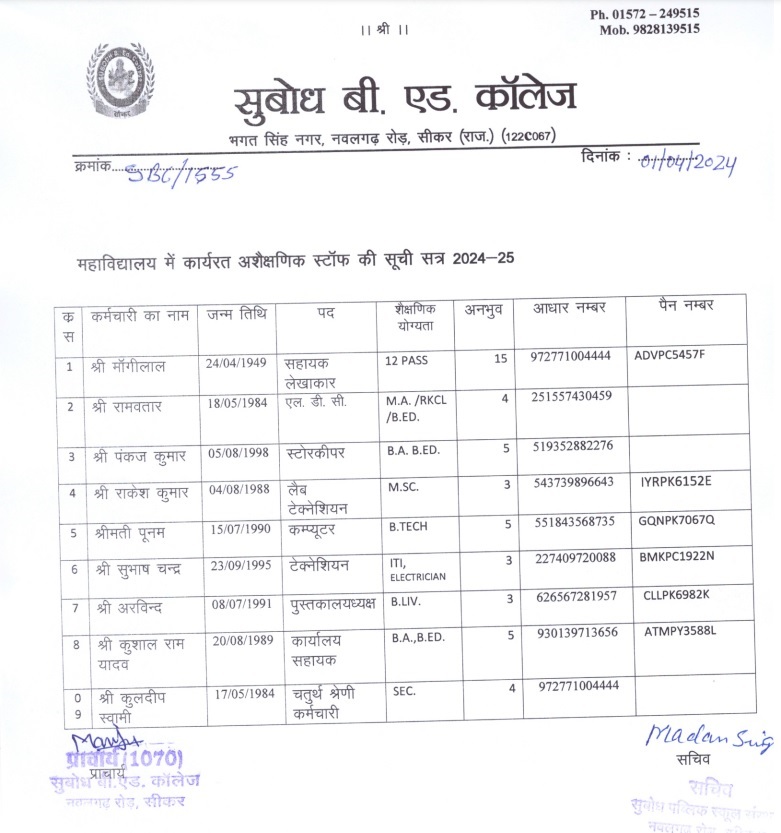 SUBODH B.ED. COLLEGE - NON-TEACHING STAFF